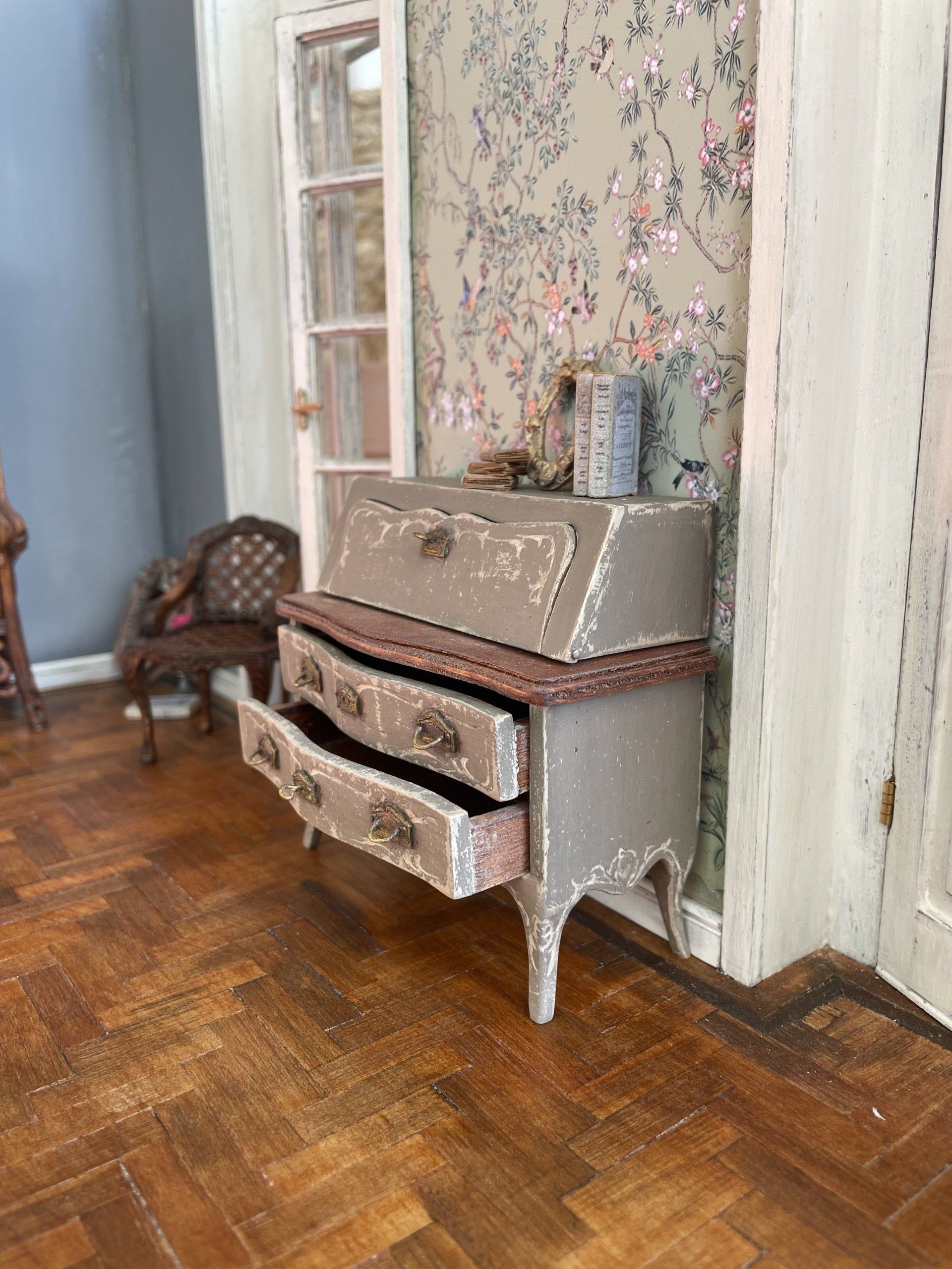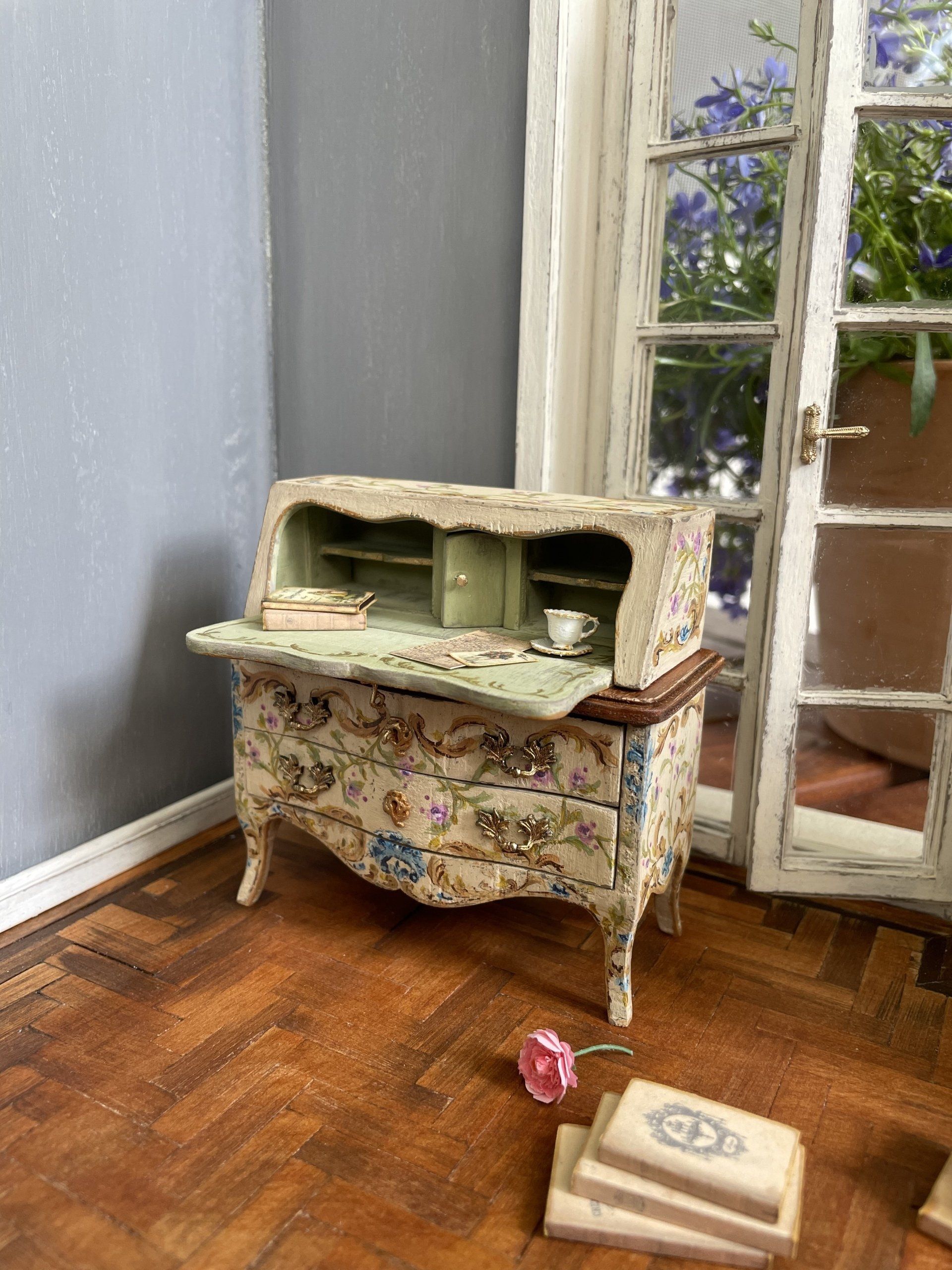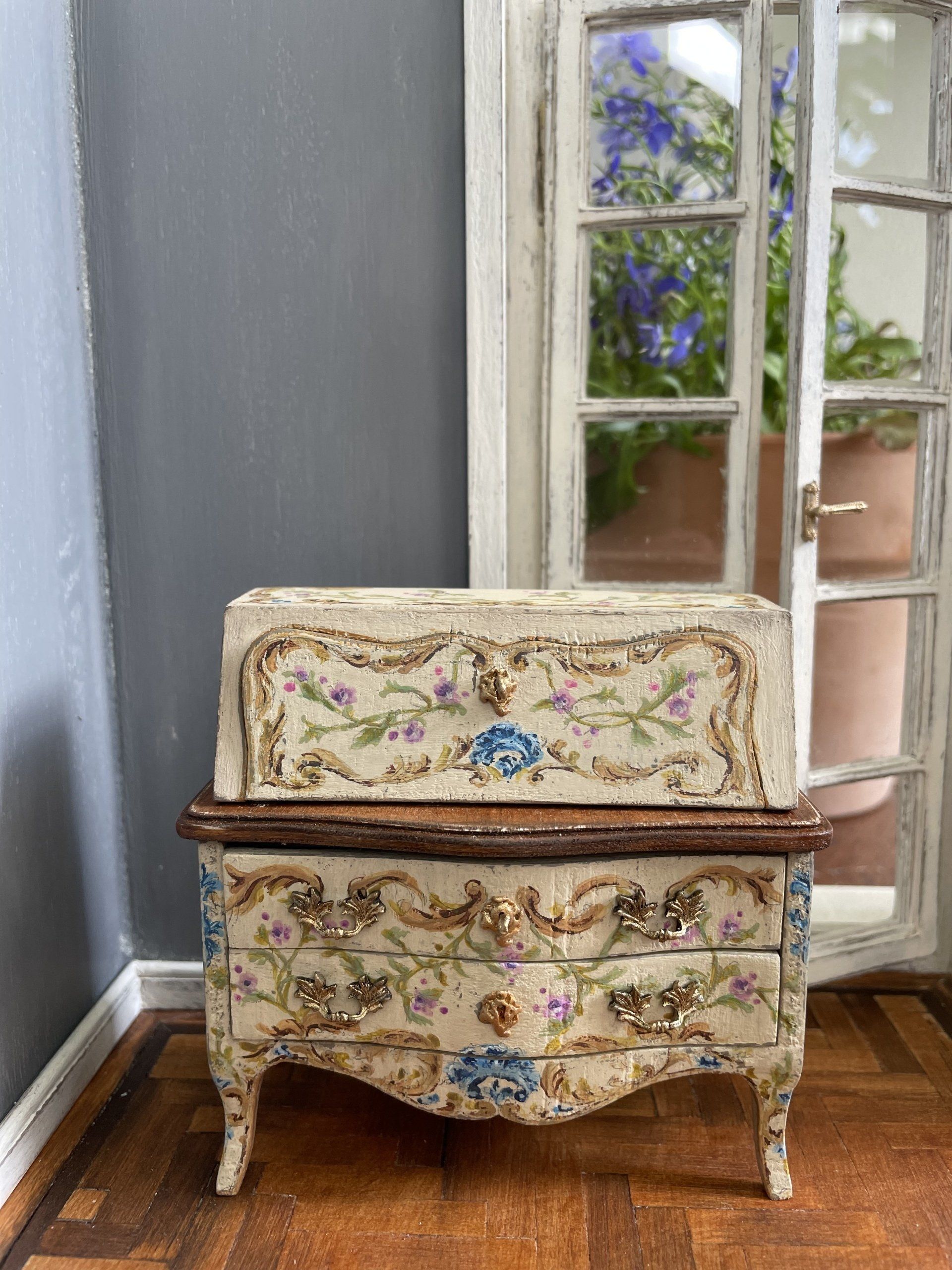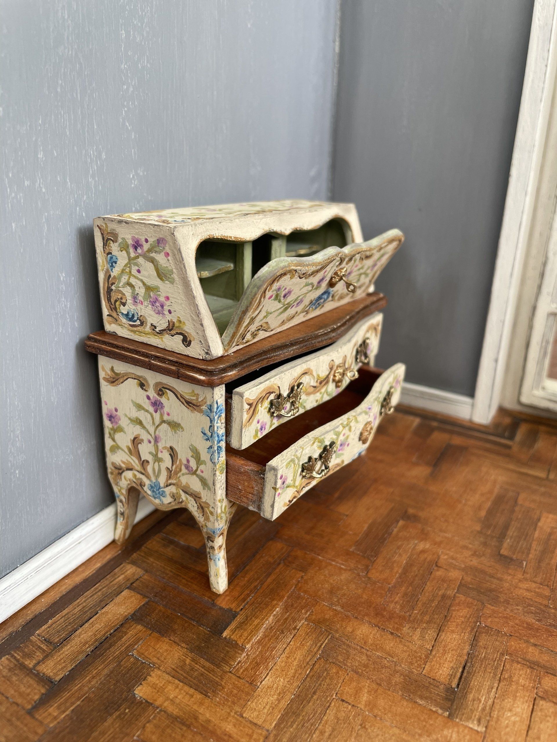 Diese kleinen bemalten Möbel haben es mir angetan! Nach sechzig Stunden war dieses Bureaux endlich fertig.