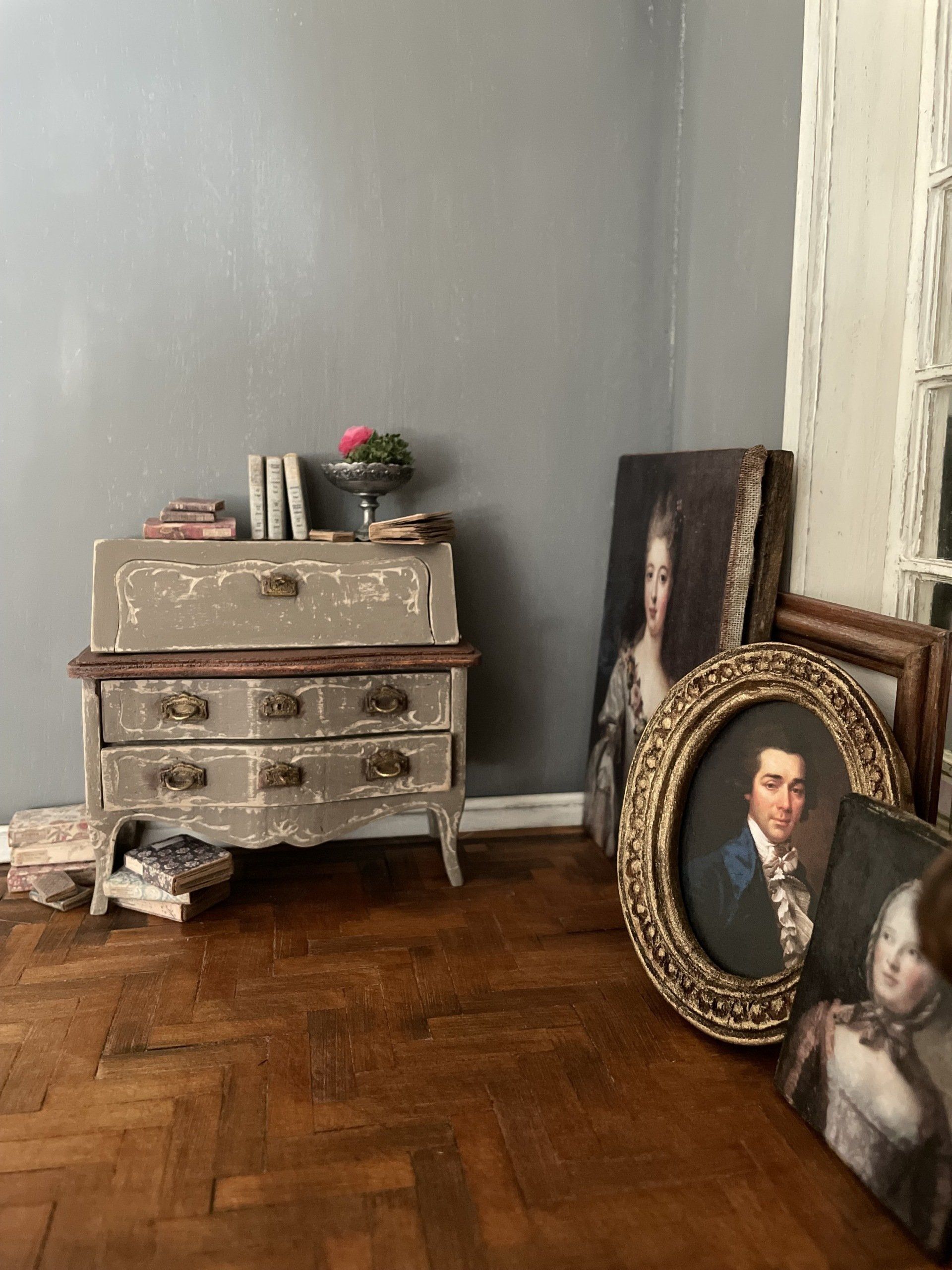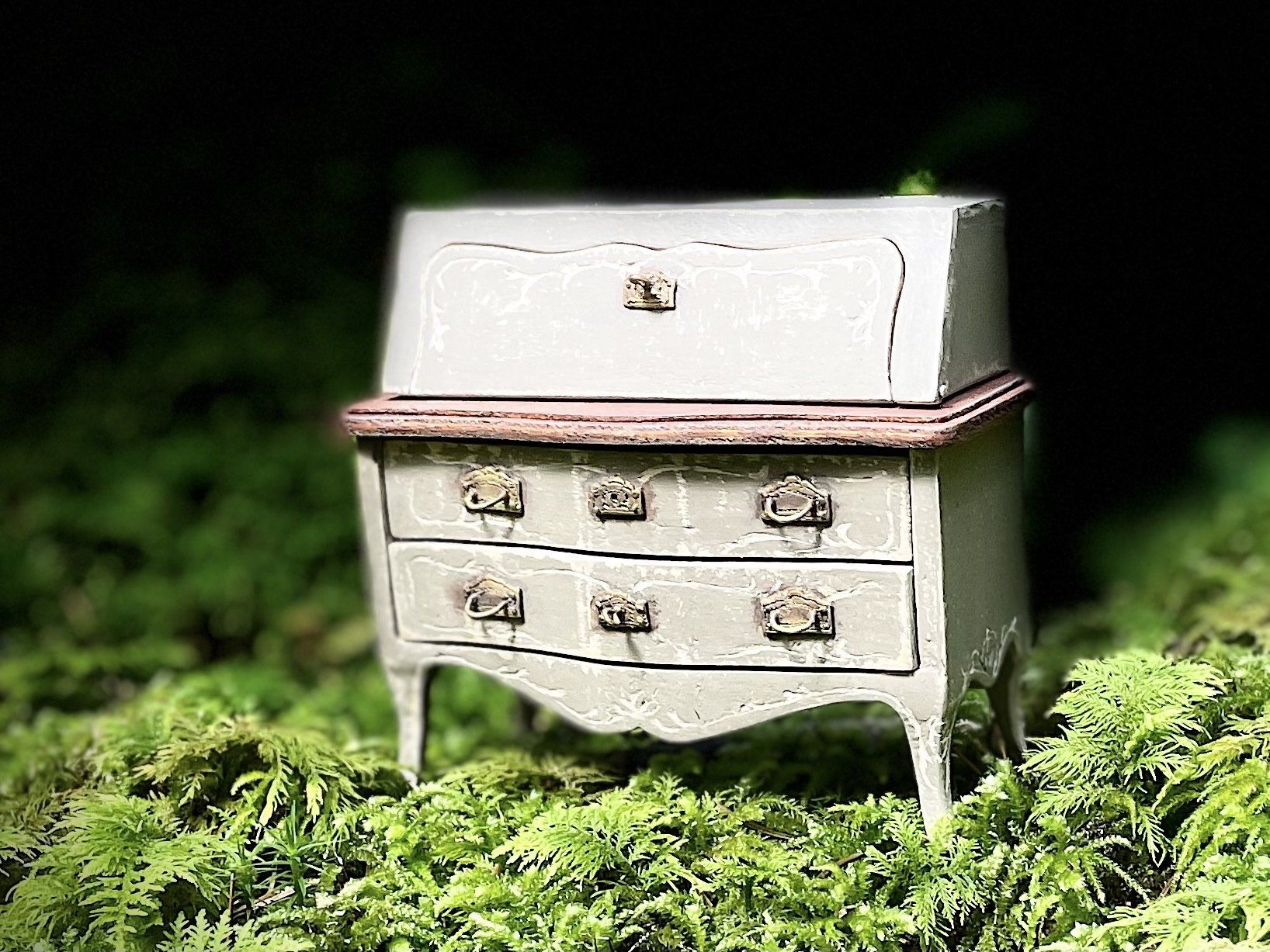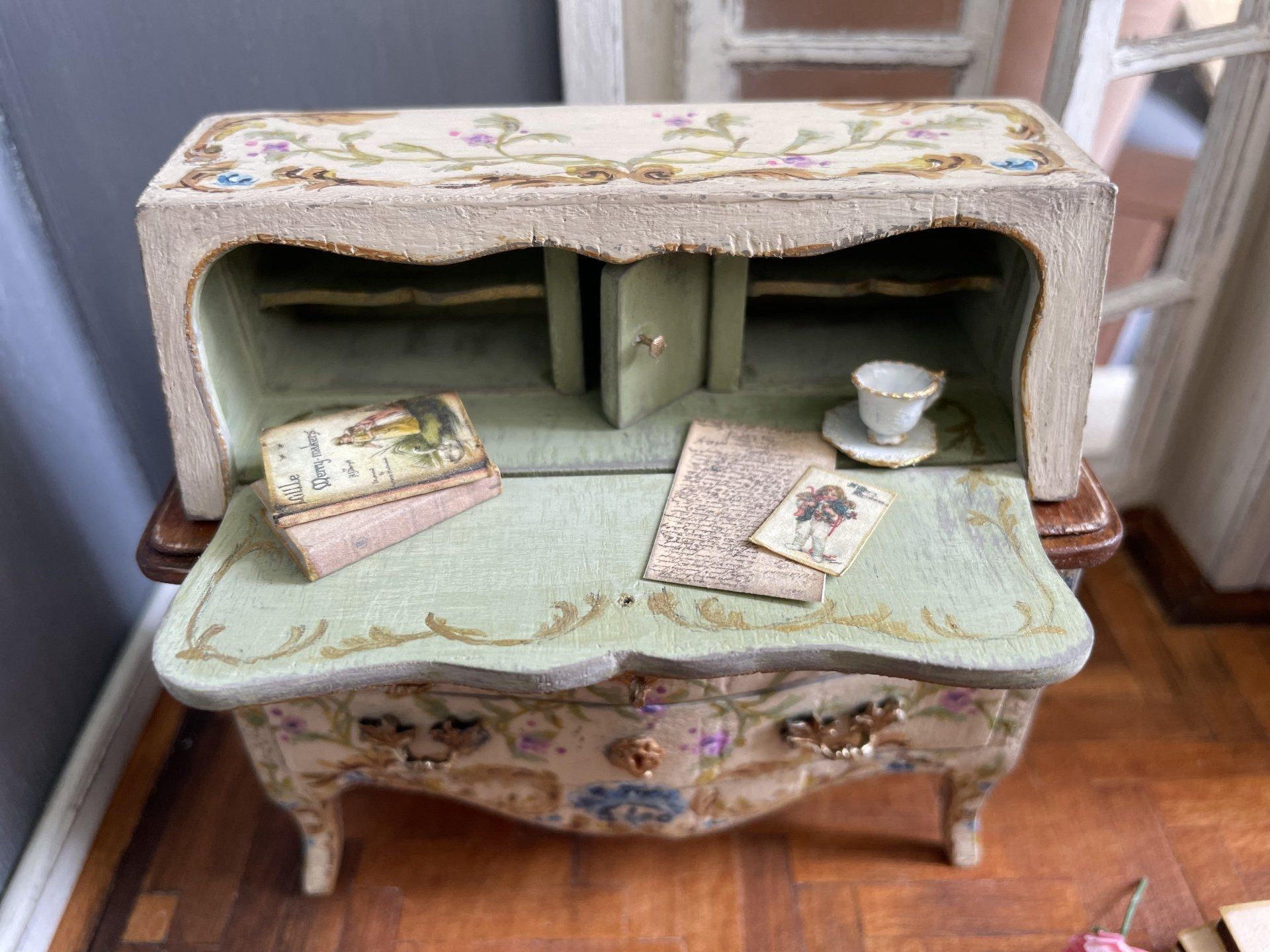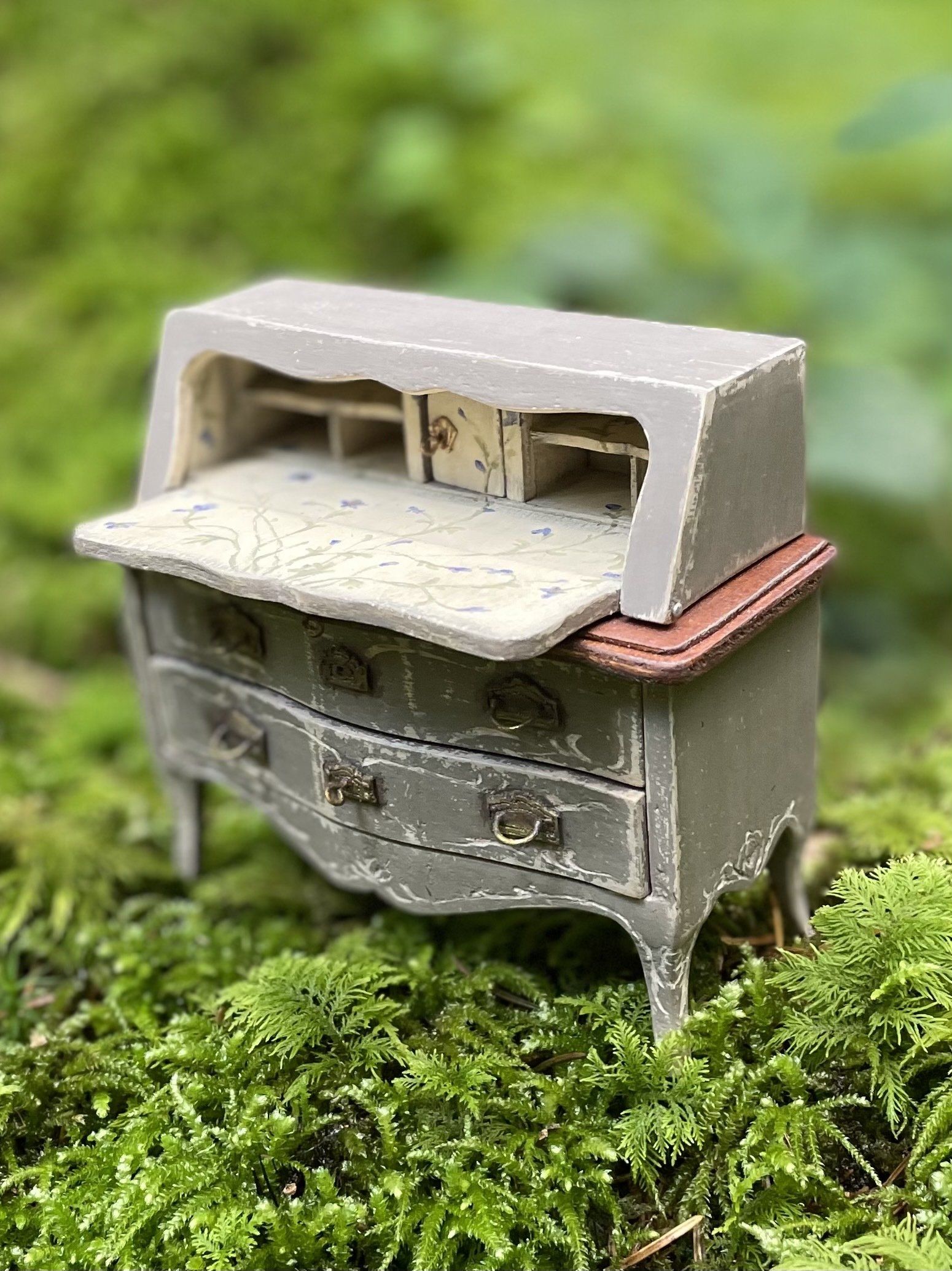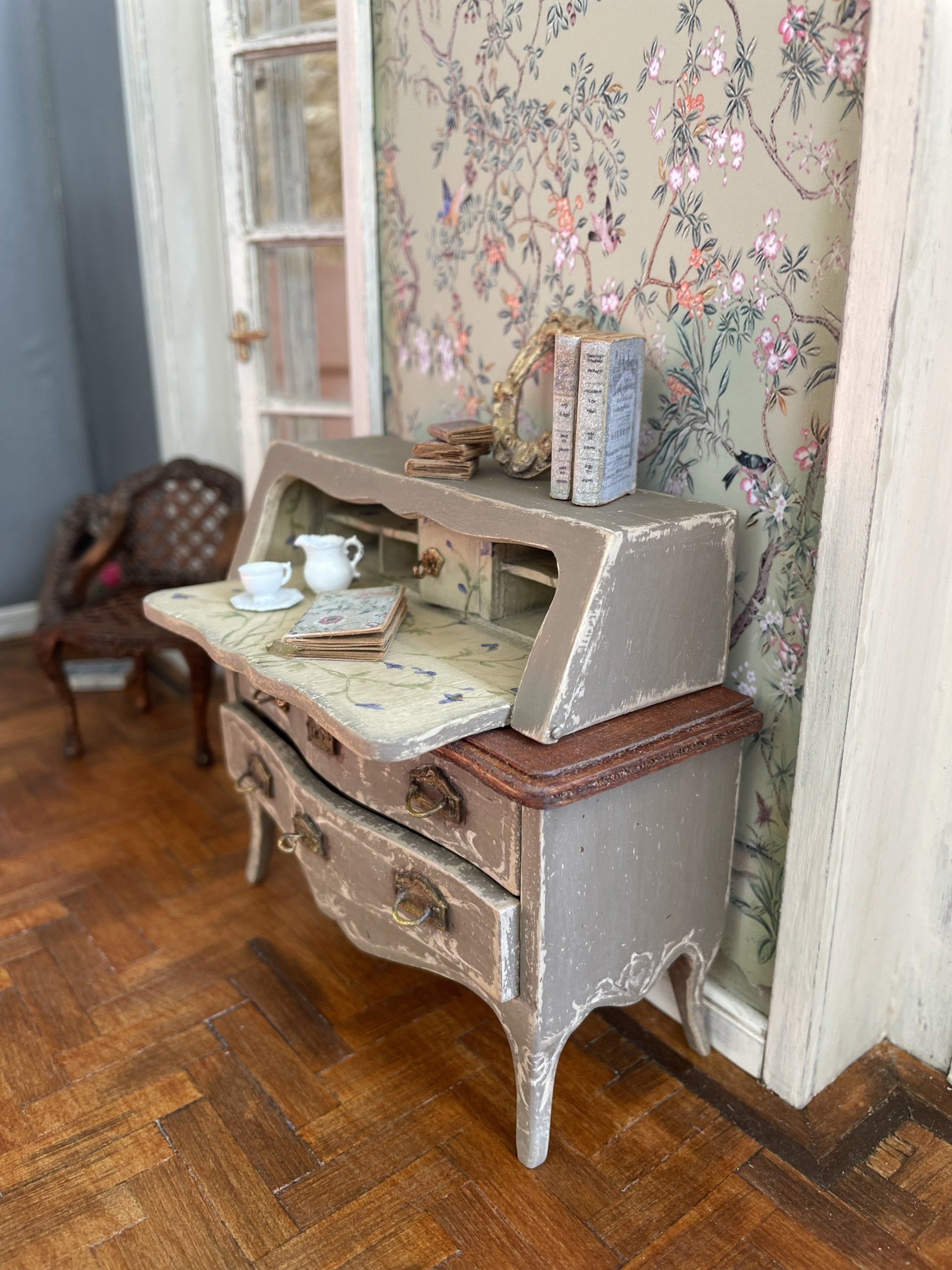 Diese kleinen bemalten Möbel haben es mir angetan! Nach sechzig Stunden war dieses Bureaux endlich fertig.