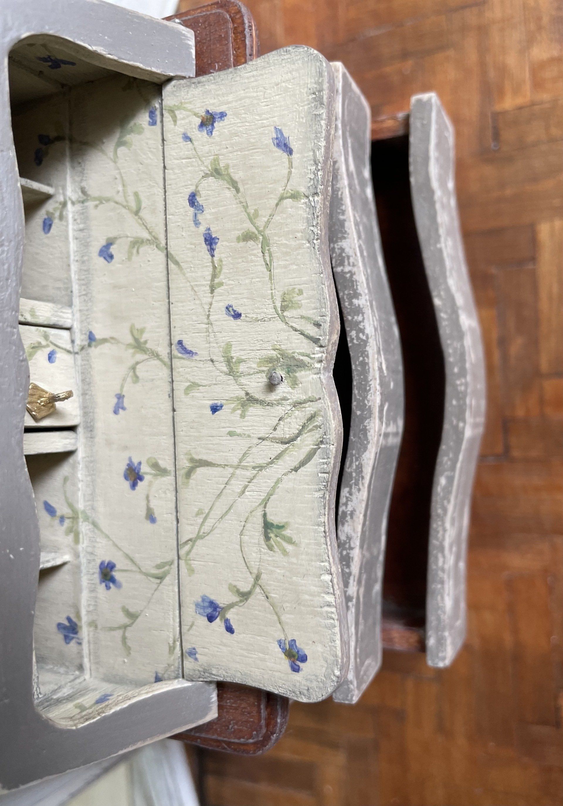 Beim Stöbern nach Vorlagen im Internet entdeckte ich eine wunderschöne bemalte Kommode und musste so eine einfach bauen.